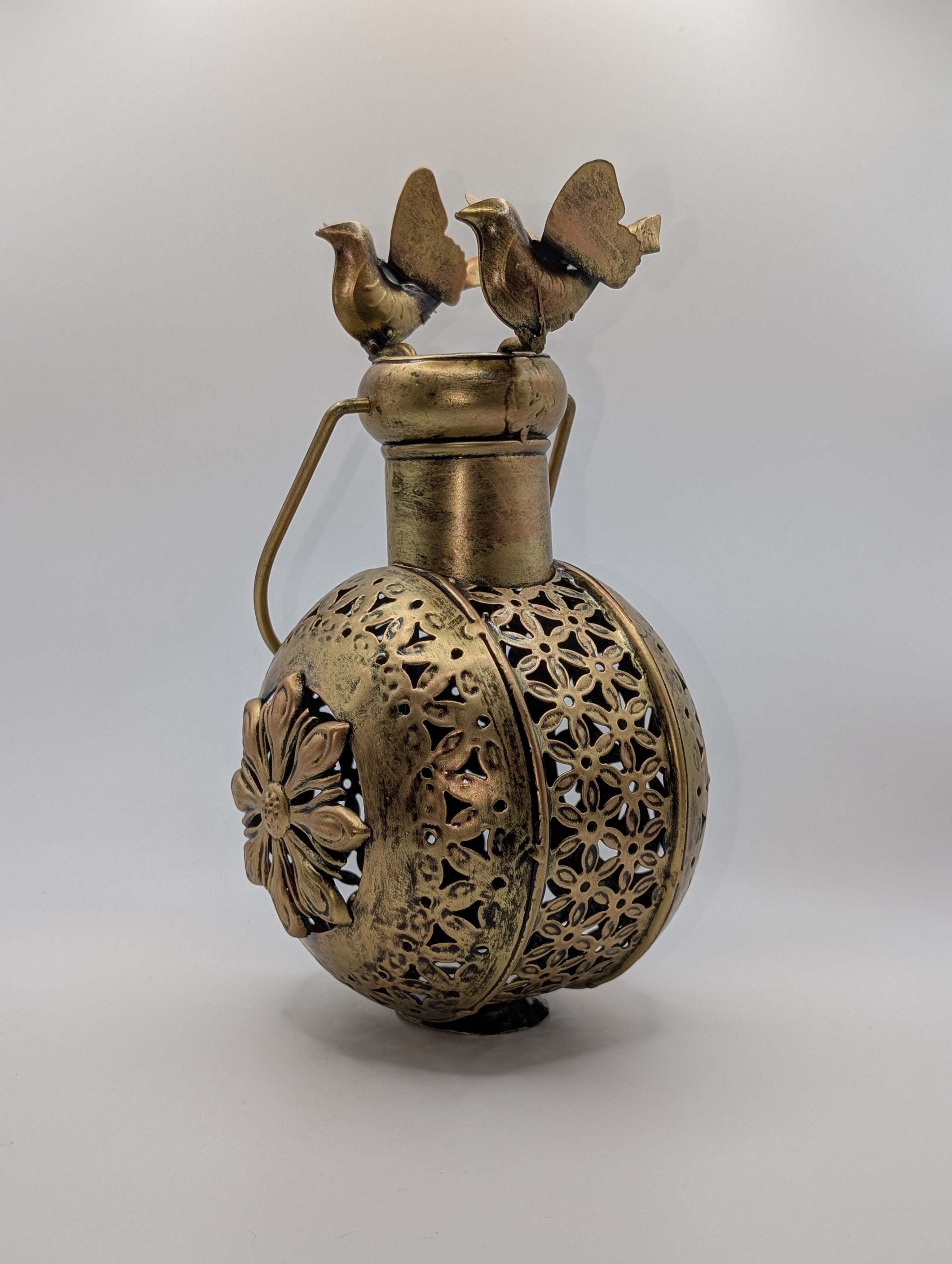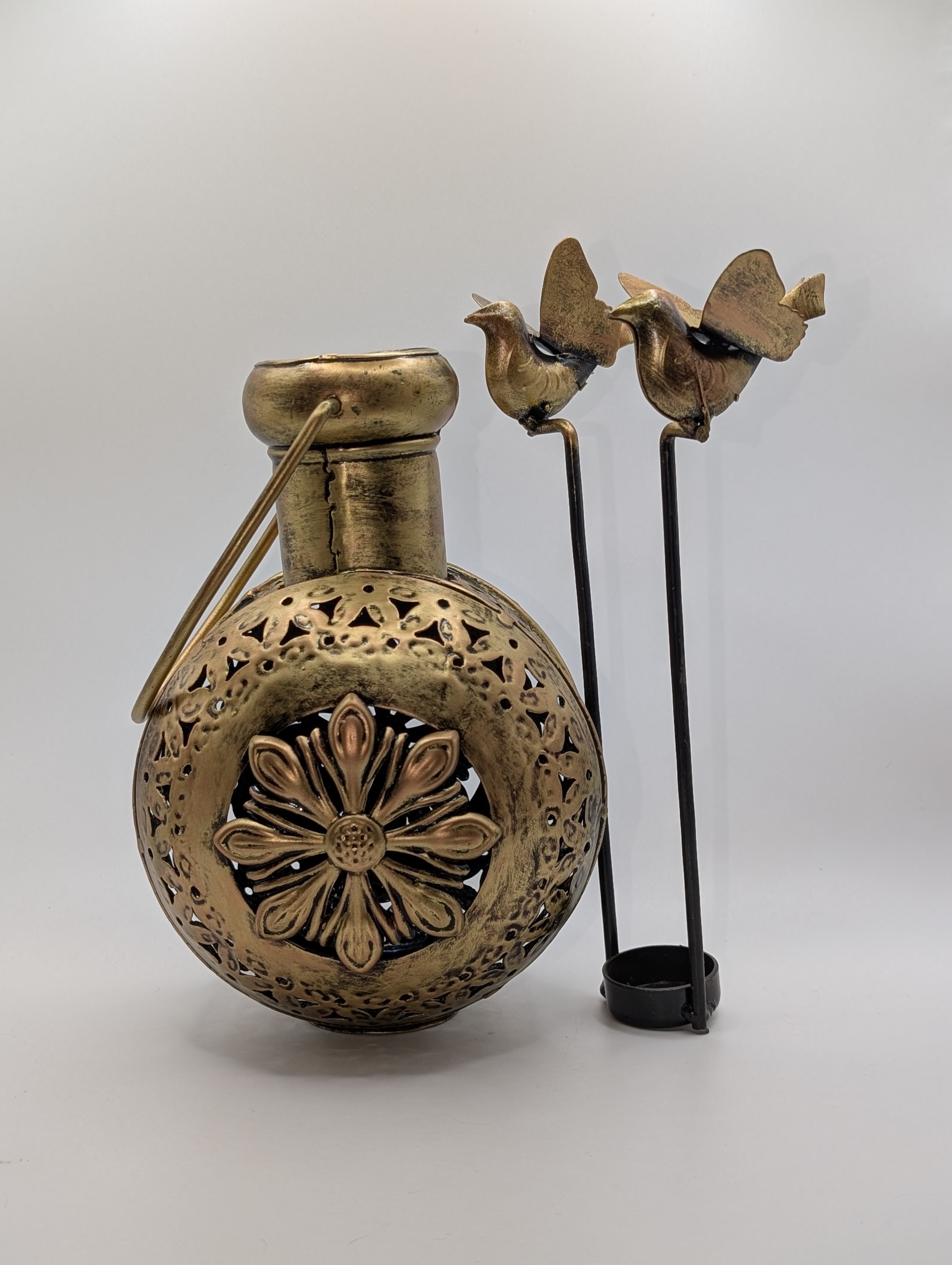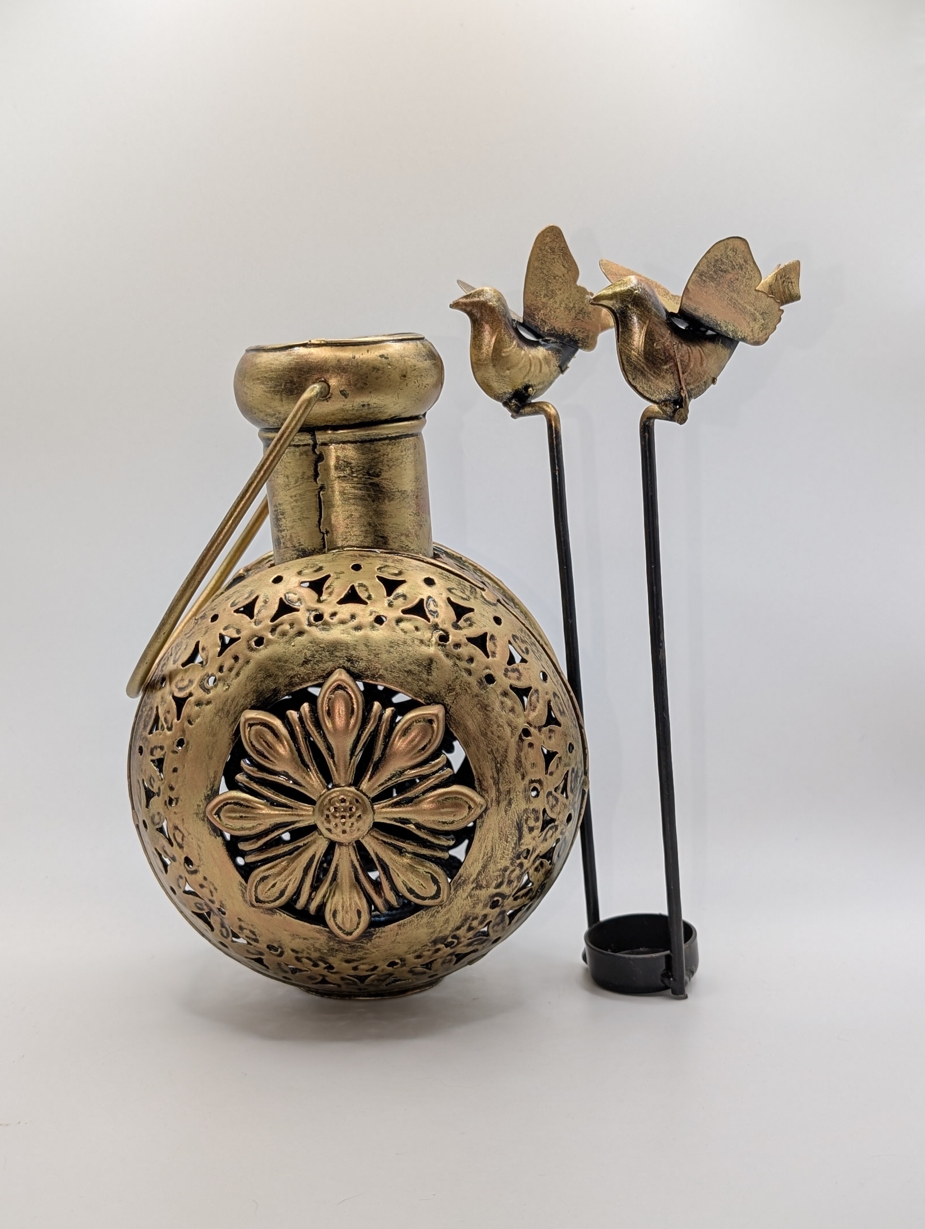 Beautiful Kettle With Bird Tealight Holder - Handmade Indian Artisan