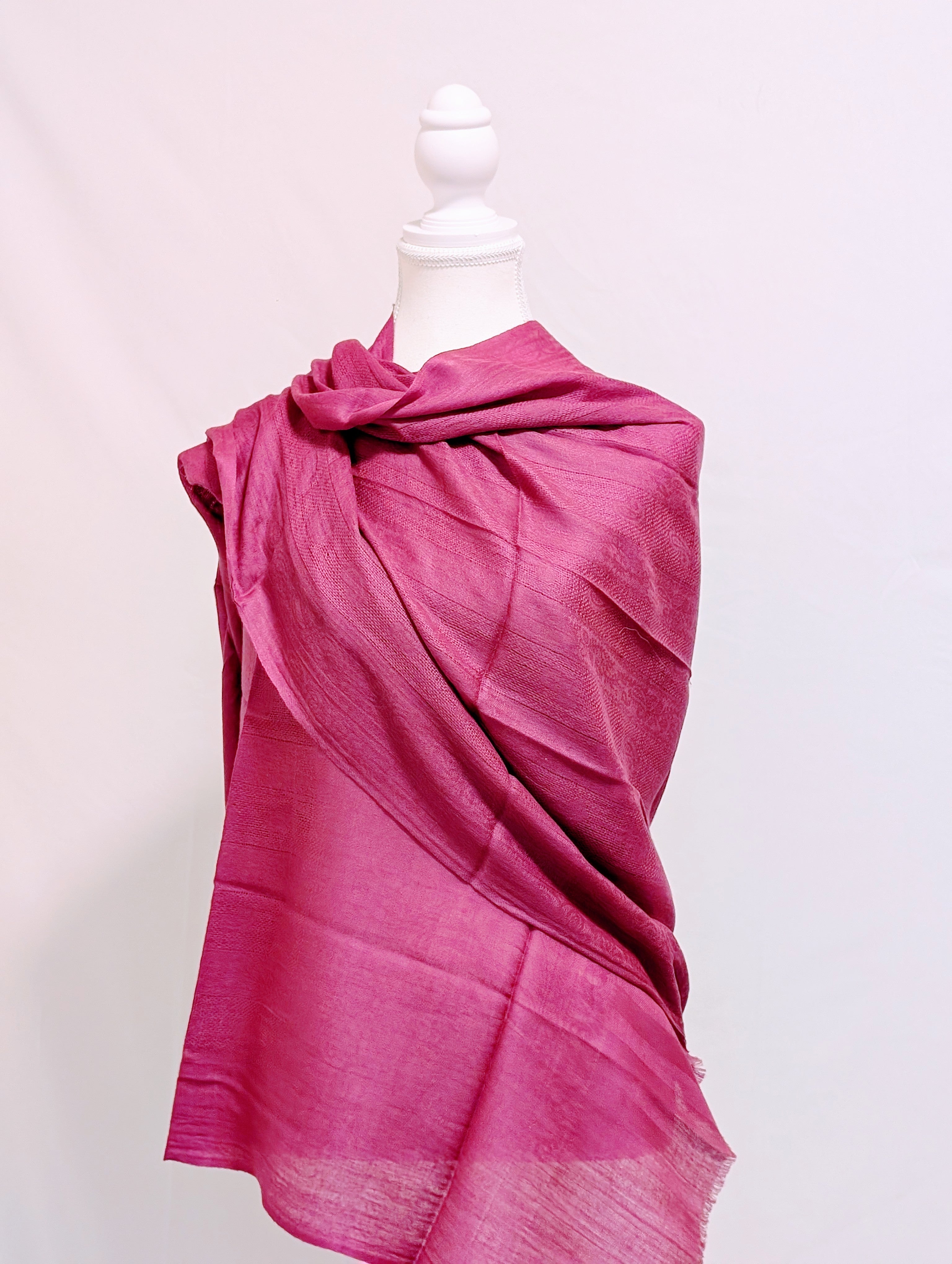 Defined by Pink, this stole is crafted from 100% pure Kashmiri pashmina—prized for its softness, breathability, and graceful drape.
