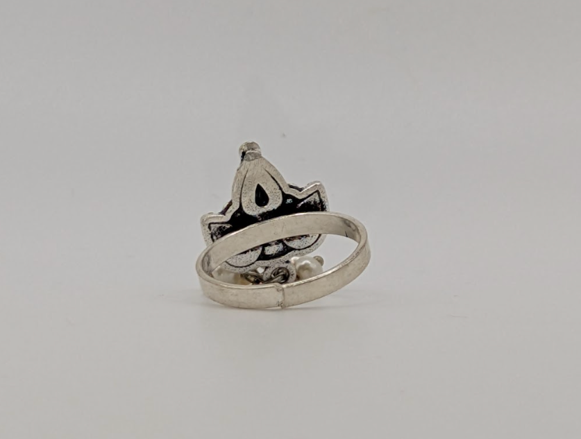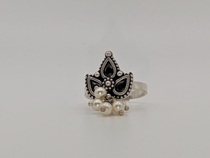 Graceful in form and confident in presence, the Elegant Modern Statement Ring with Black Enameled Maple Leaf and White Beads design from our collection is designed to elevate everyday style with quiet sophistication. Its refined silhouette and contemporary finish create a piece that feels polished, intentional and effortlessly wearable.