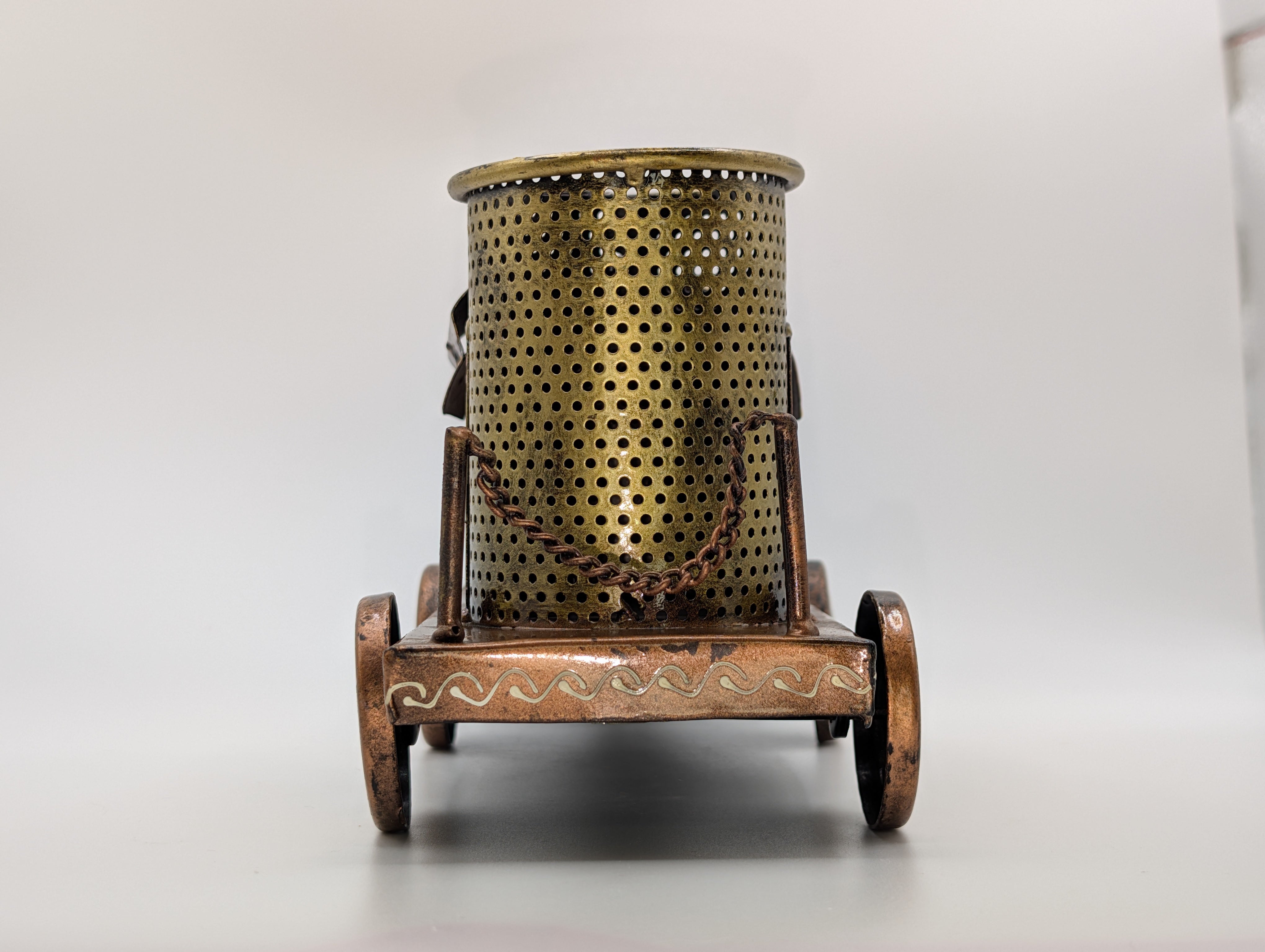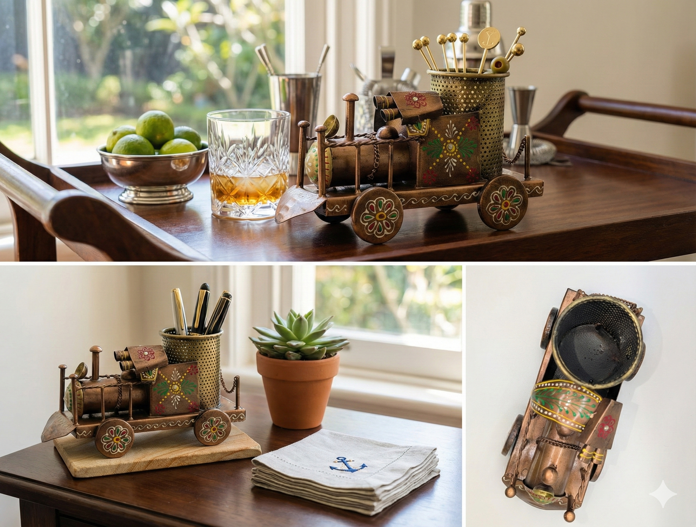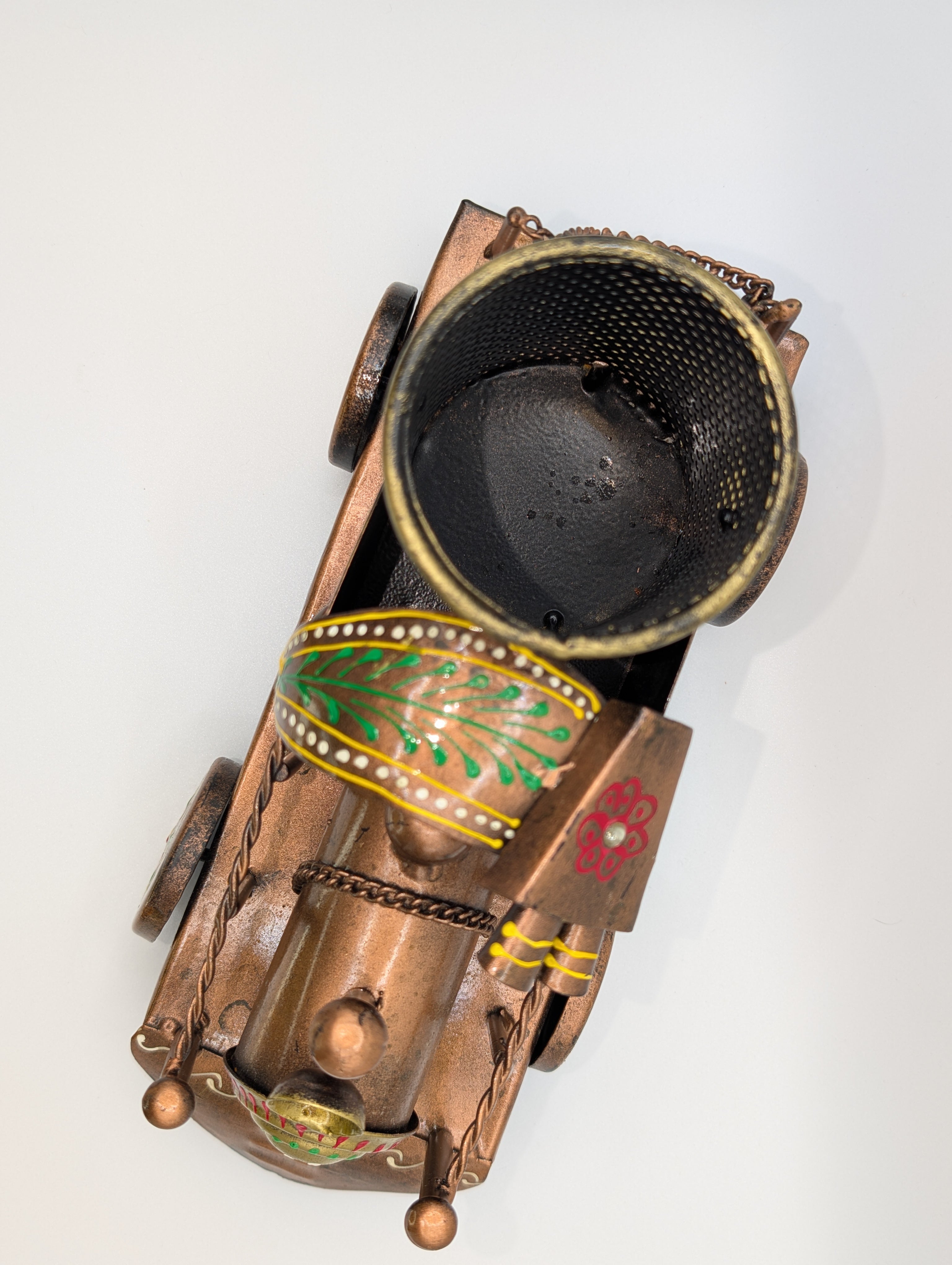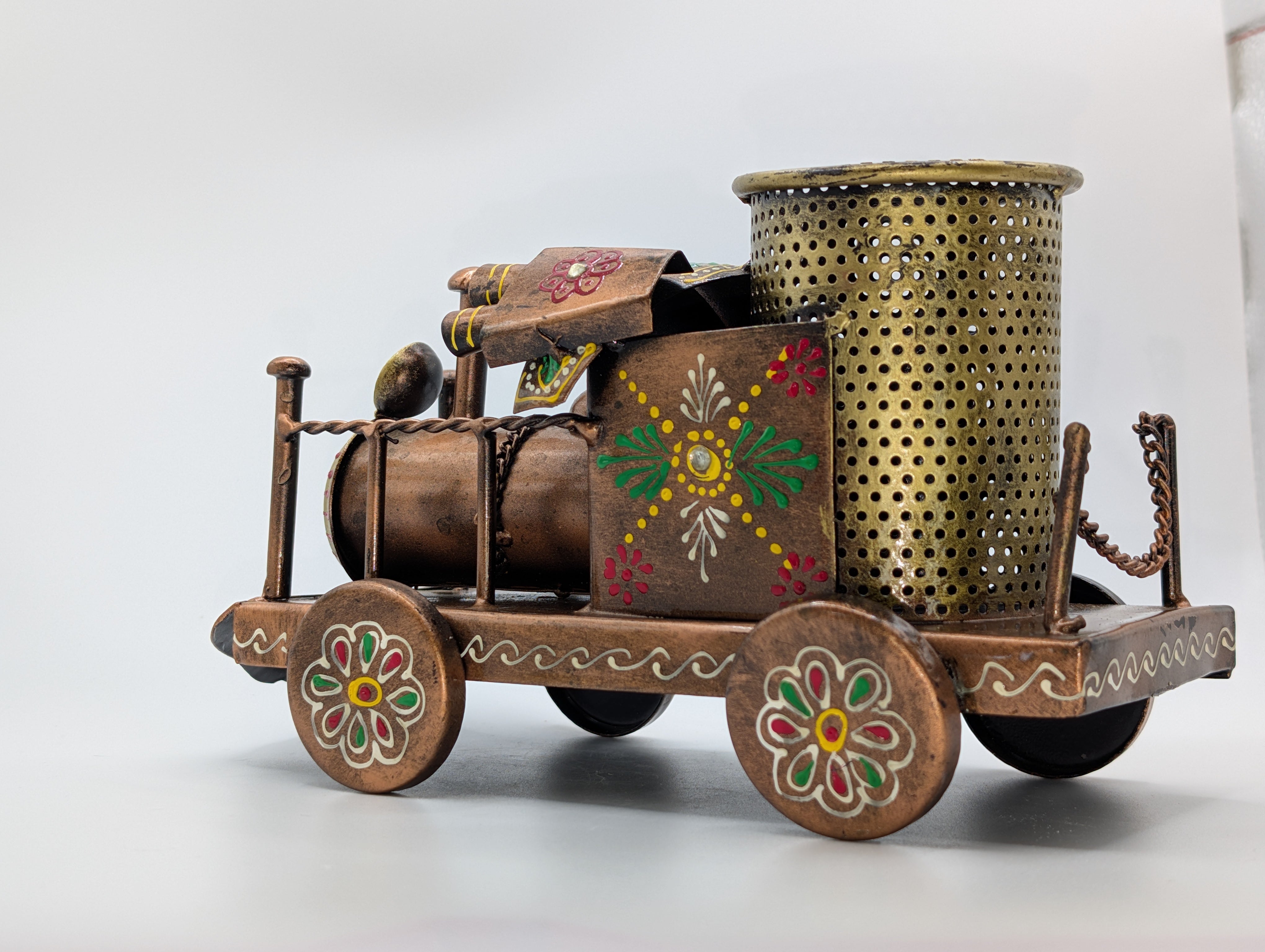 Exquisite Hand-Painted Metal Pen Stand - Steam Engine — Handmade Indian Artisanal