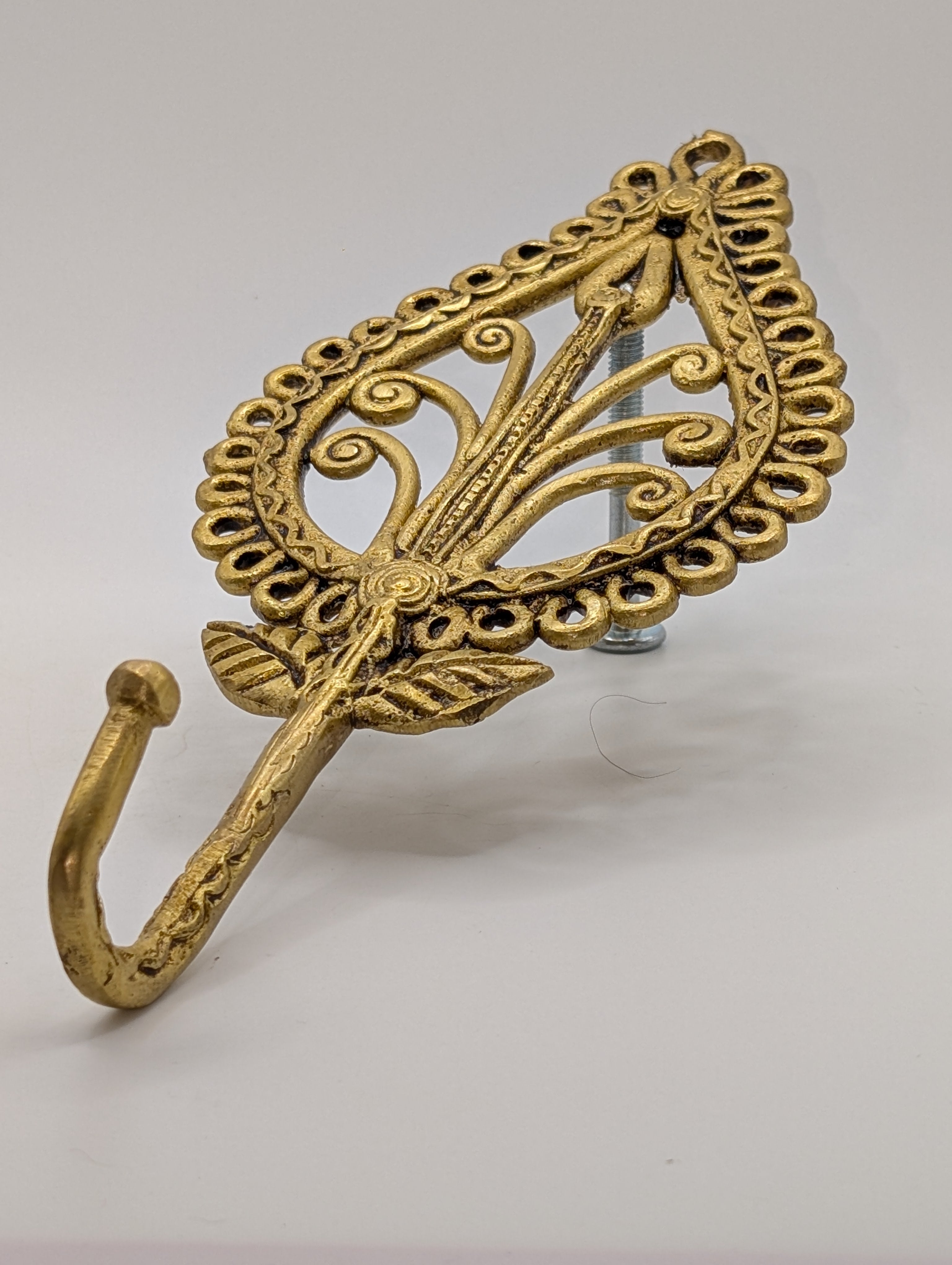 Exquisite Solid Brass Leaf Design Hanger Hook — Handmade Indian Wall Hook
