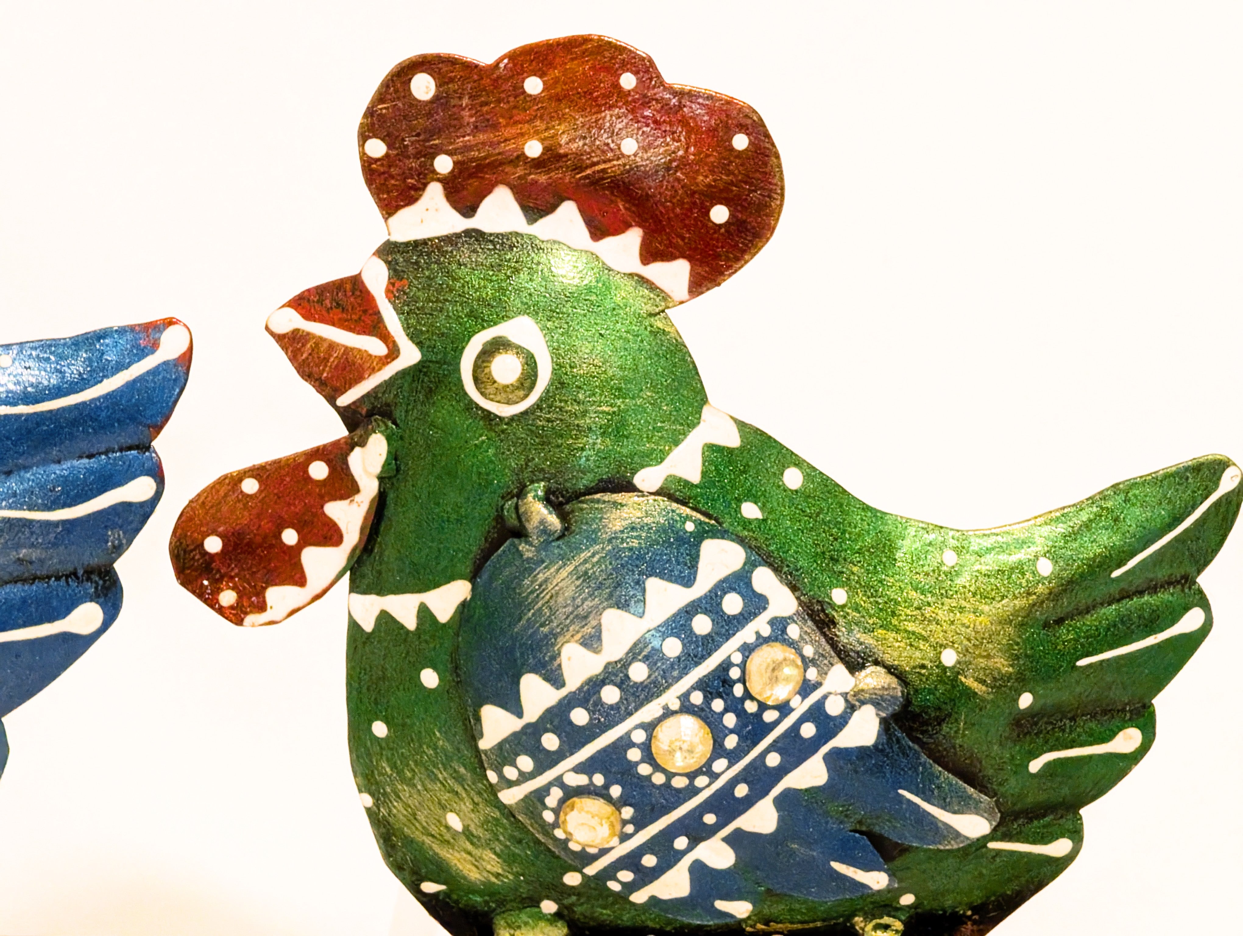 In India's artisan villages, metalworkers have long shaped, embossed, and painted decorative objects using bold colours, dotted motifs, and nature-inspired forms. This hook rail honours that heritage, where roosters and birds symbolise awakening, prosperity, and joyful energy. Each bird is hand-cut, individually shaped, and hand-painted with vivid hues and dotted detailing that reflects the lively, unpolished charm of traditional folk craft. This is artistry that doesn't strive for perfection — it celebrates personality.