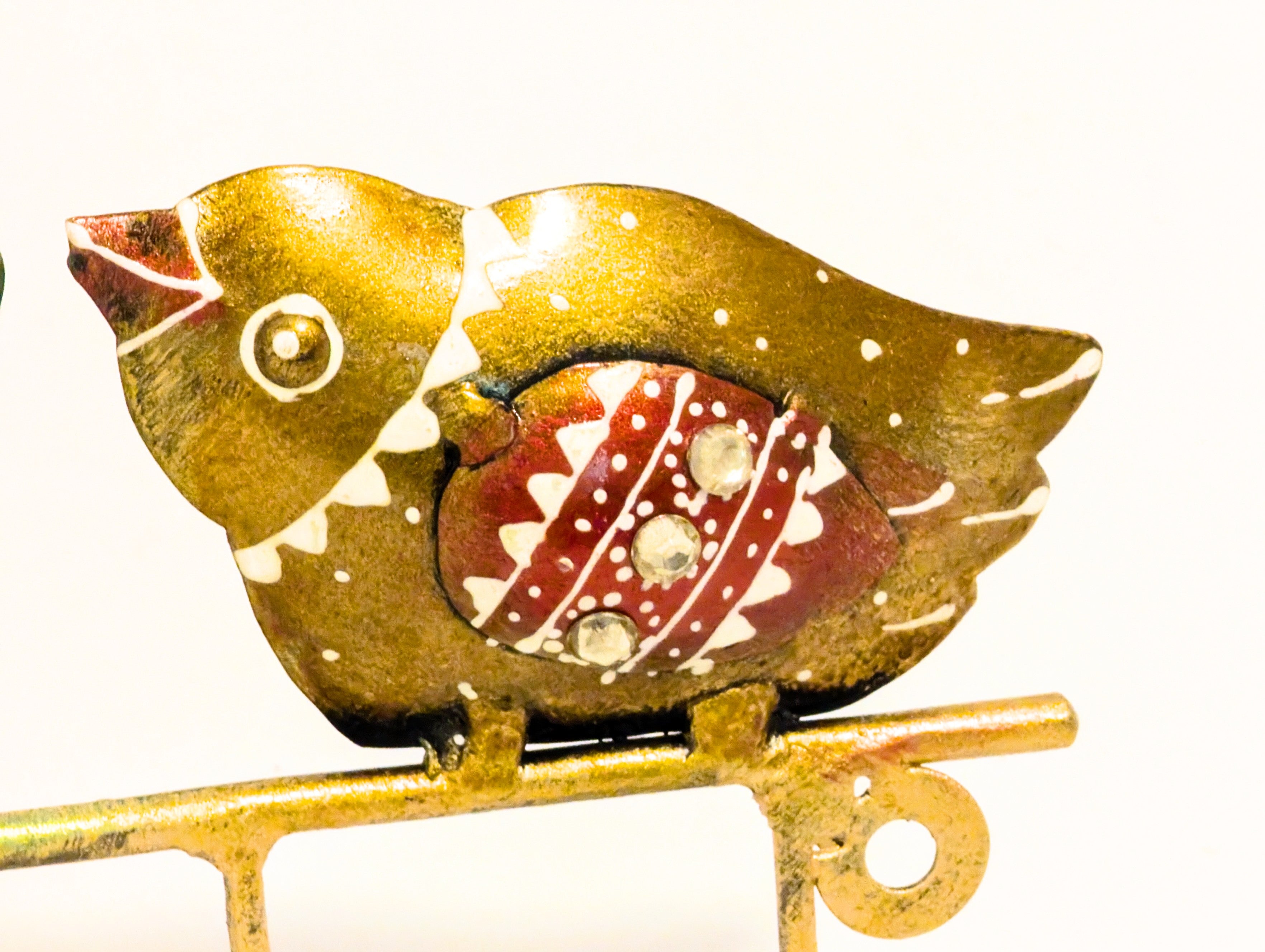 This Hand-Painted Metal Bird Hook Rail is not just wall storage it is a celebration of colour, craft, and India's vibrant folk art traditions. Three joyful birds painted in vivid blues, greens, and golds perch along a textured branch, each dotted with intricate patterns that echo the playful spirit of Indian village artistry. Lightweight yet sturdy, this rail transforms keys, scarves, and everyday essentials into an opportunity for beauty, bringing warmth and character to hallways, bedrooms, children's rooms, or entryways.