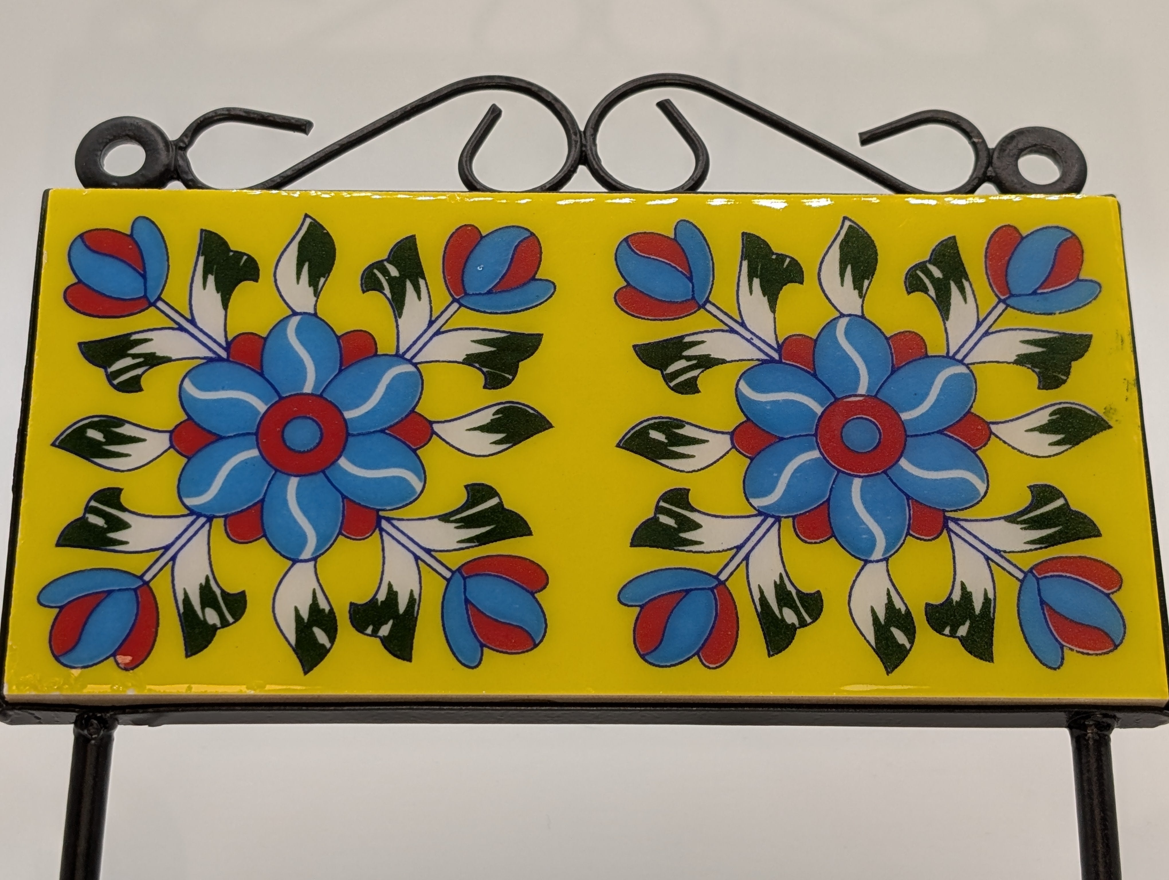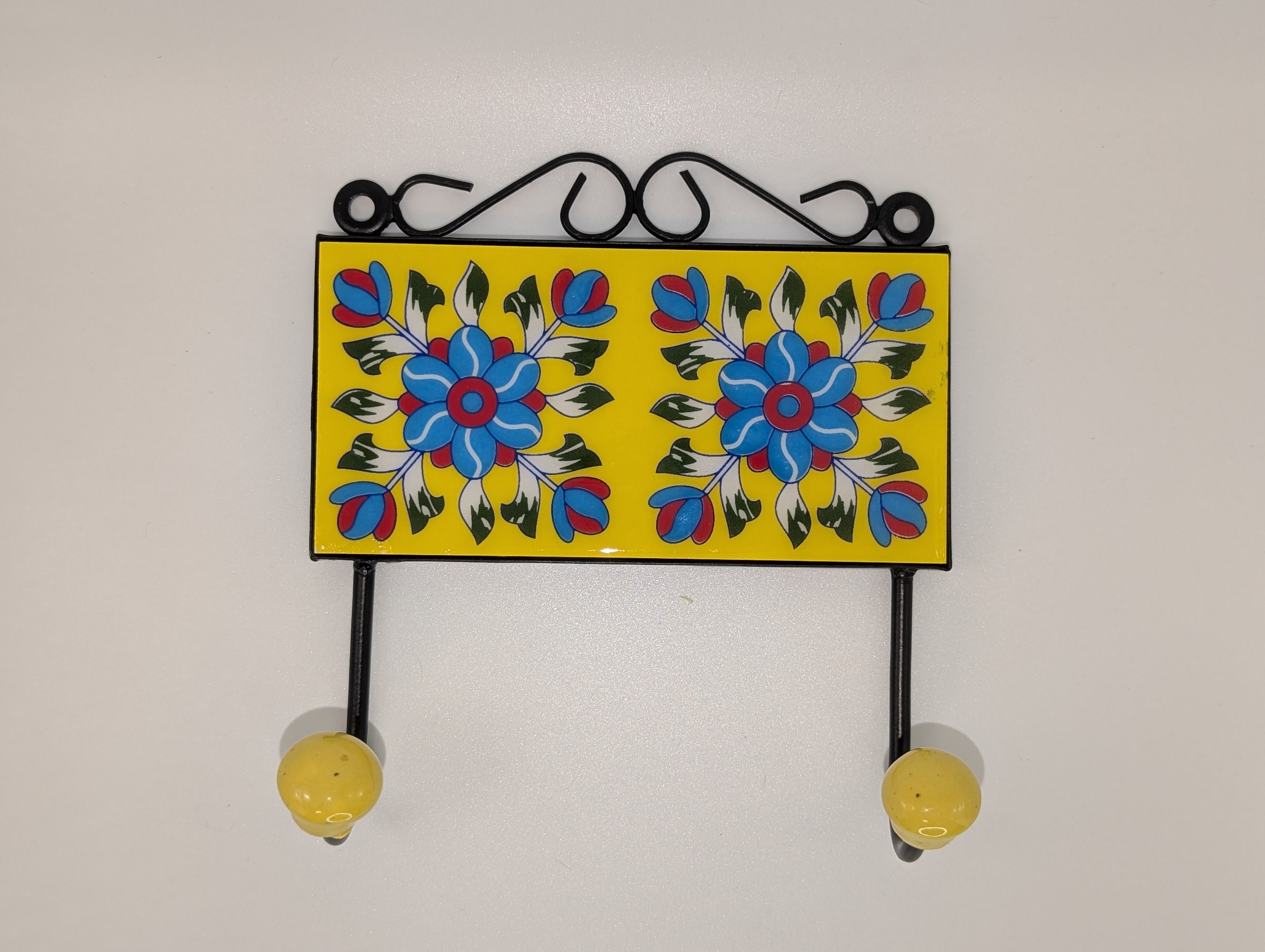 Vibrant Ceramic Double Hanger Hook — Handmade Indian Artisanal
