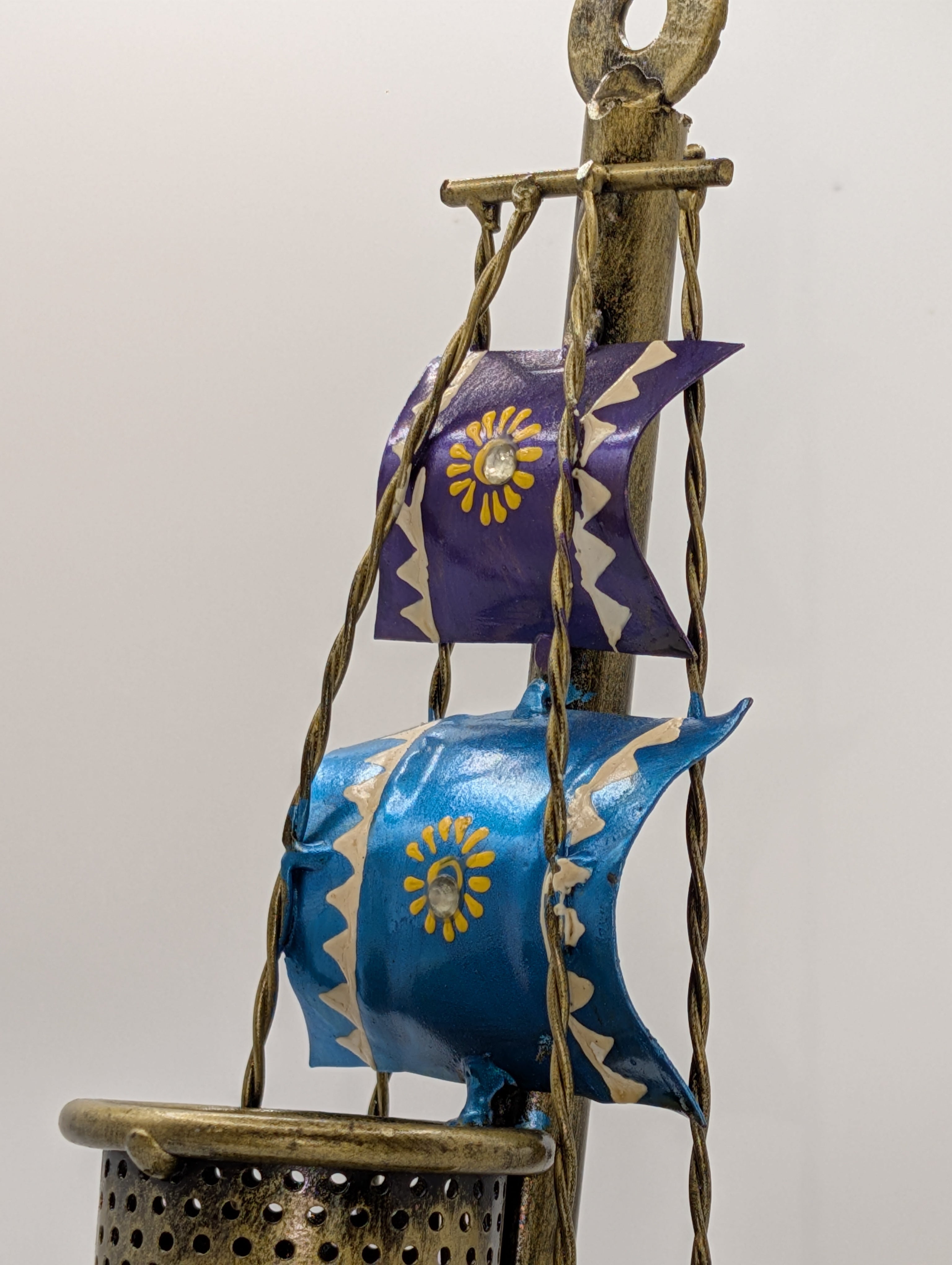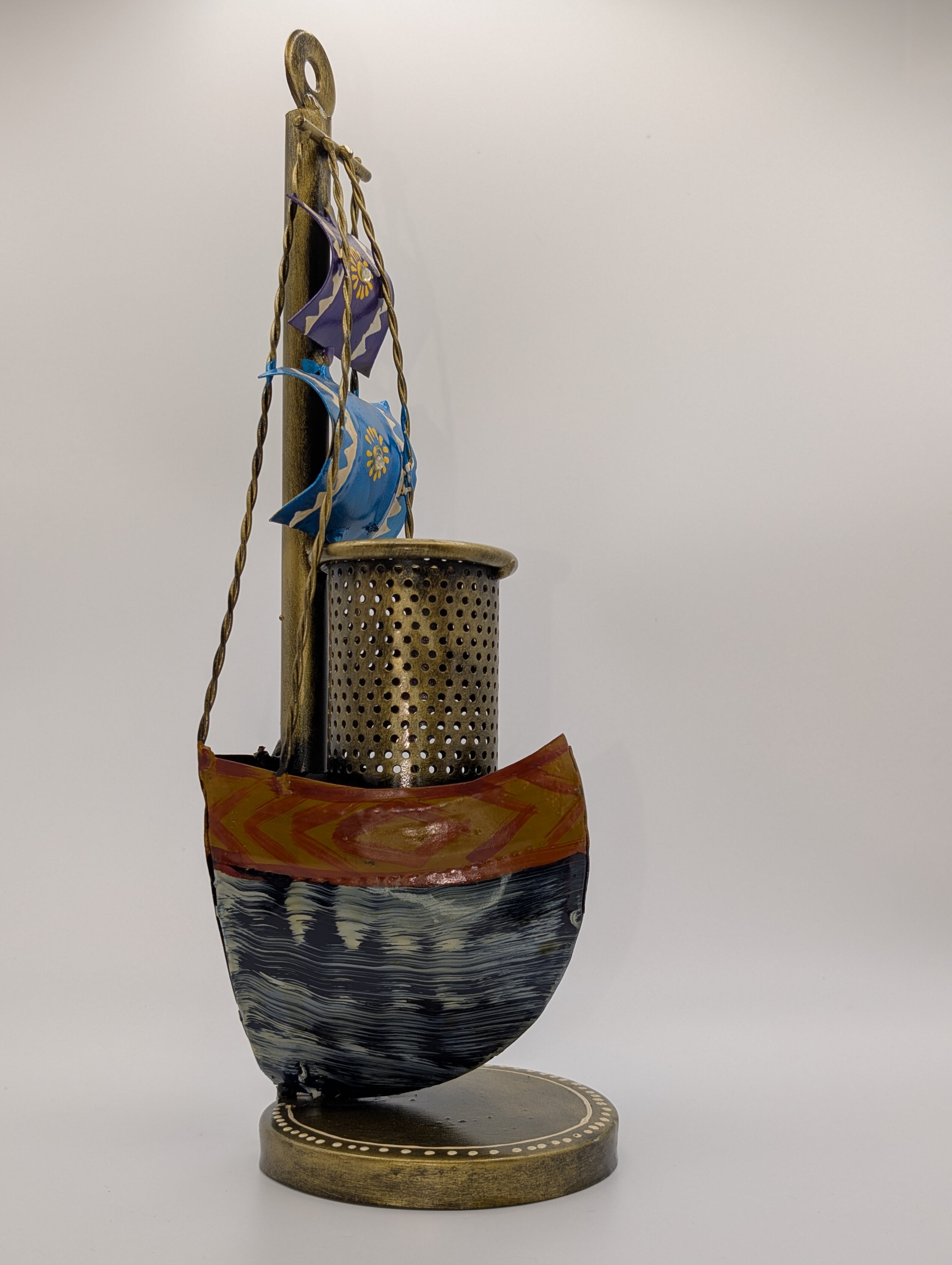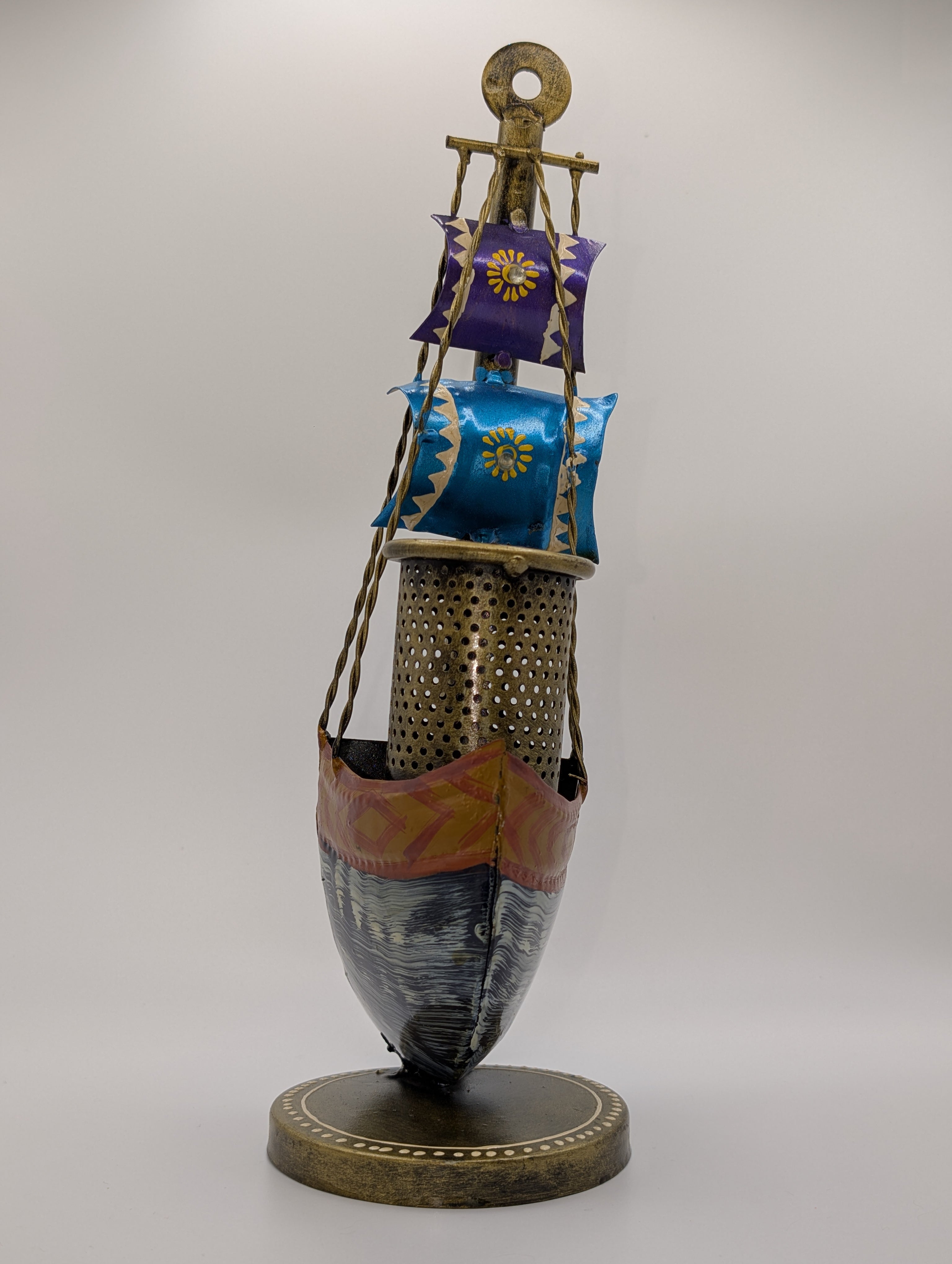 The vibrant colours of the sails on this pen stand/tableware holder can elevate any space with its striking colours and unique shape. Crafted from handcrafted metal alloy by Indian artisans.