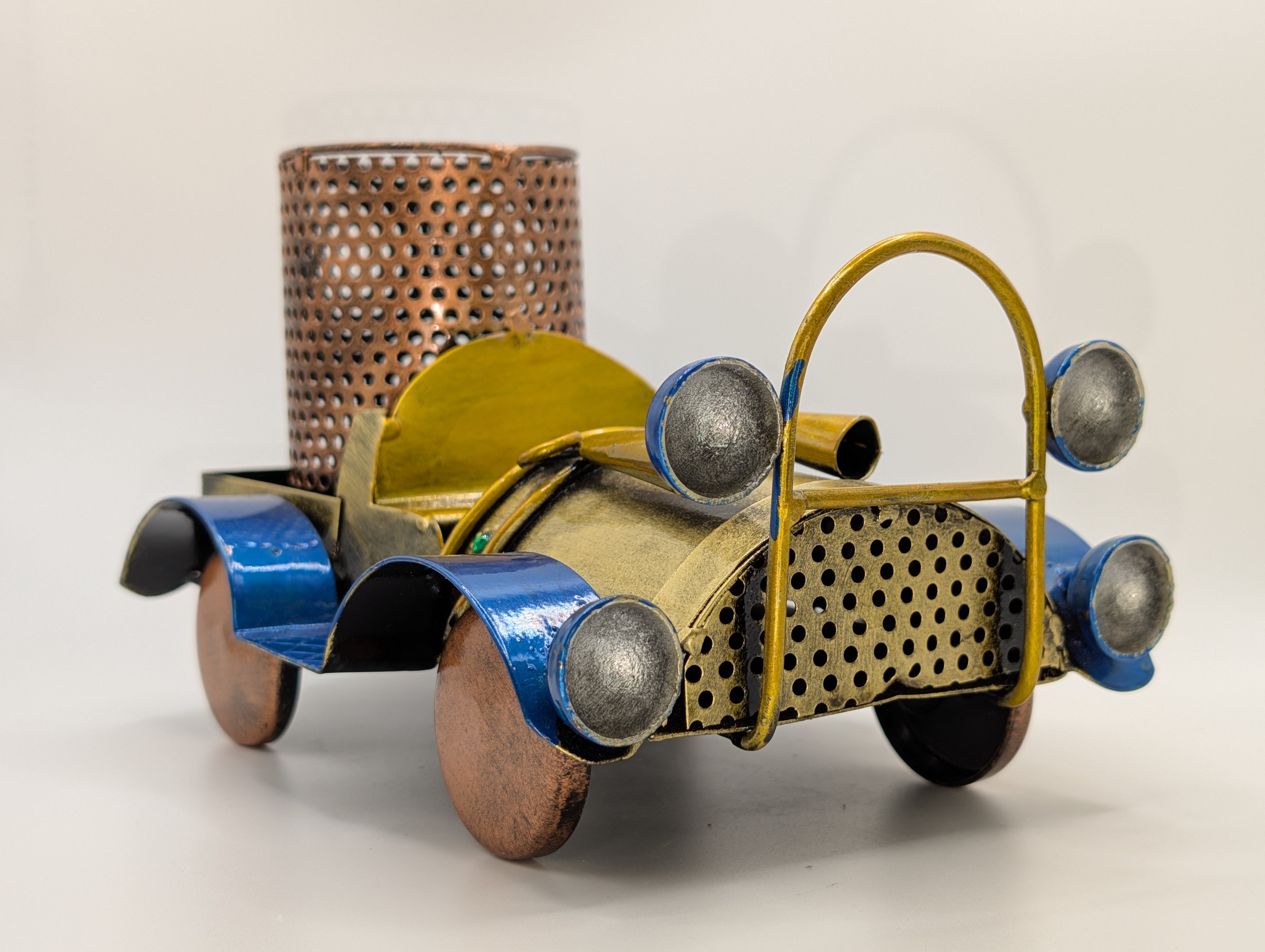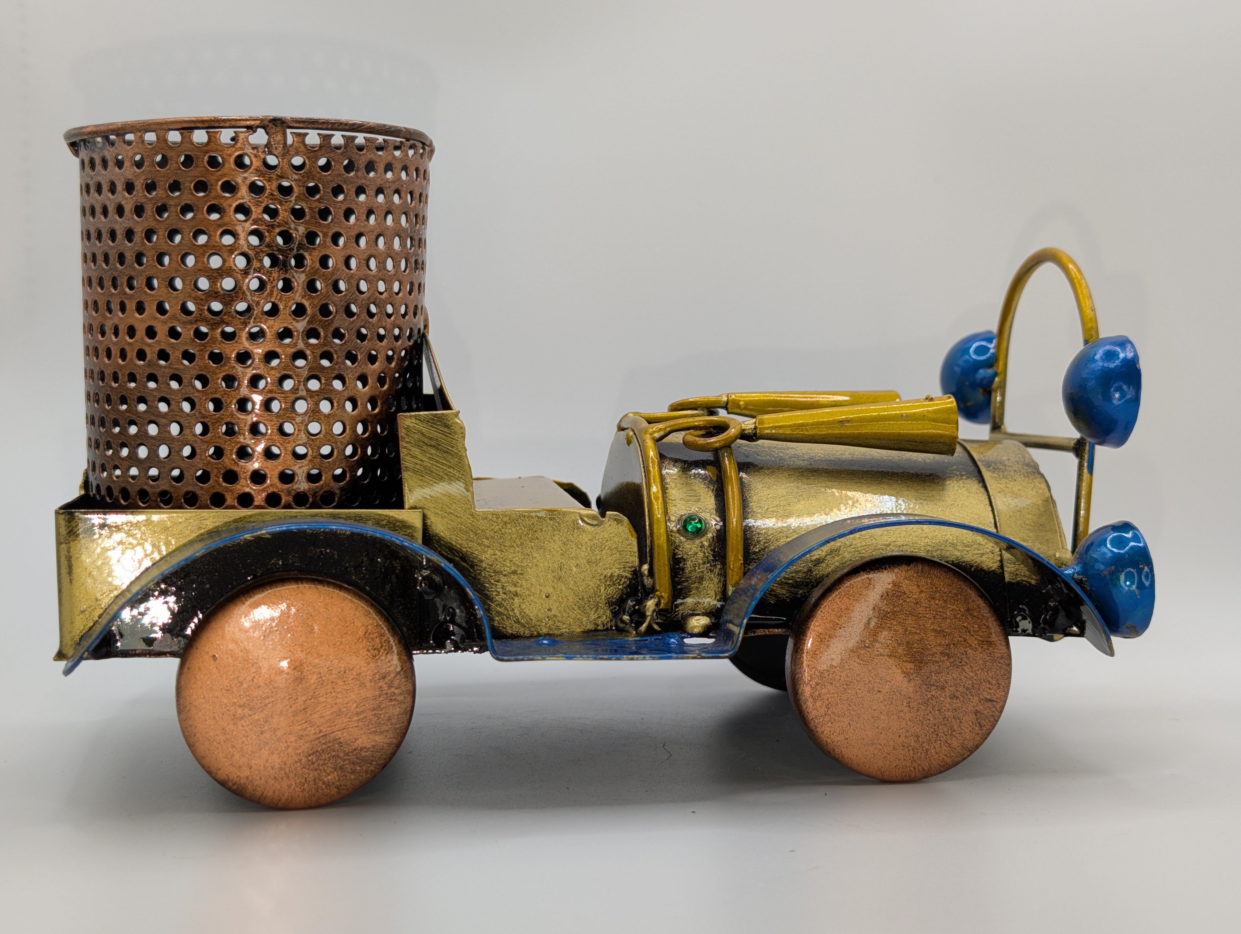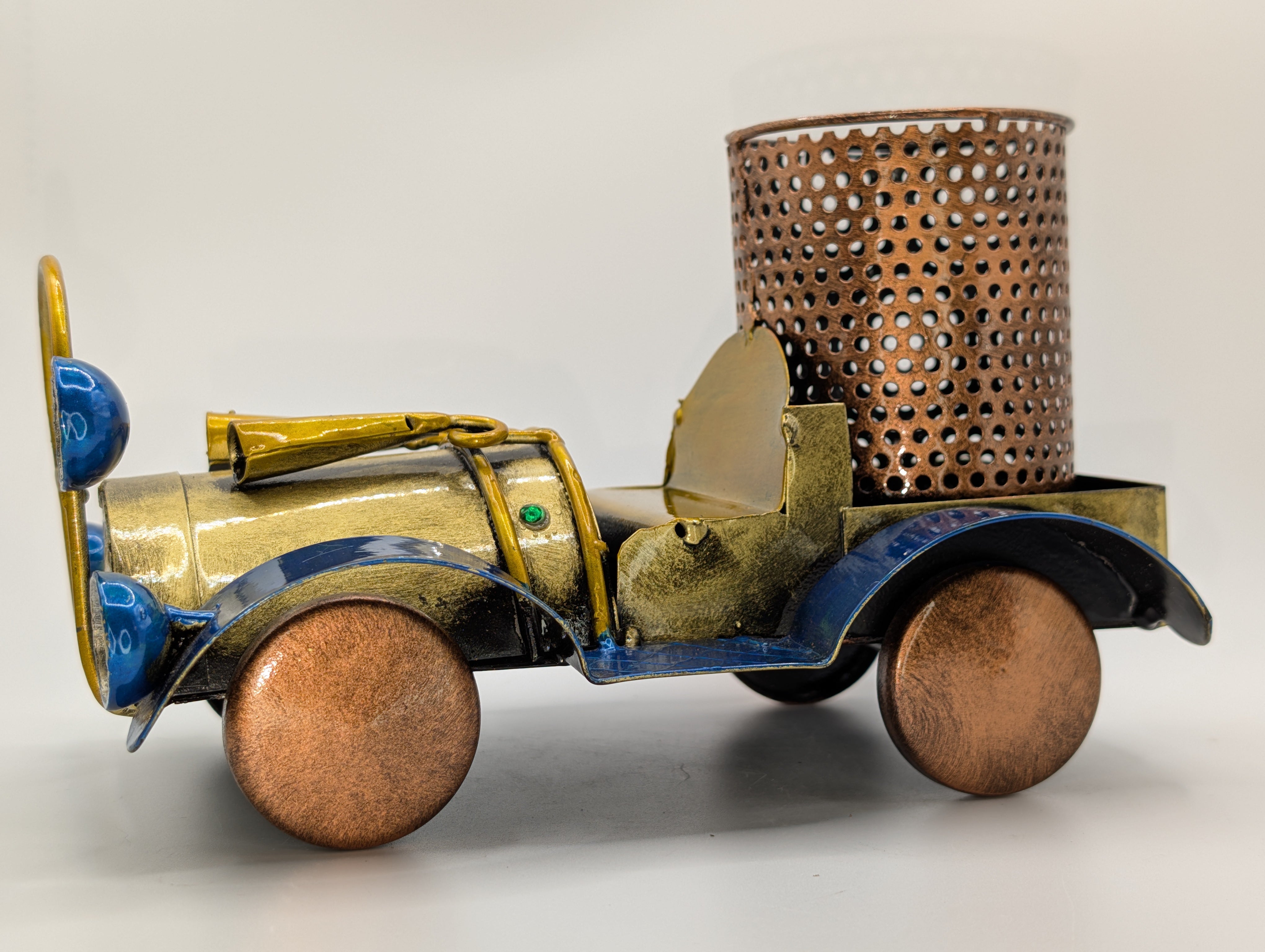 Vintage Metal Car Pen Stand — Handmade Indian Artisanal