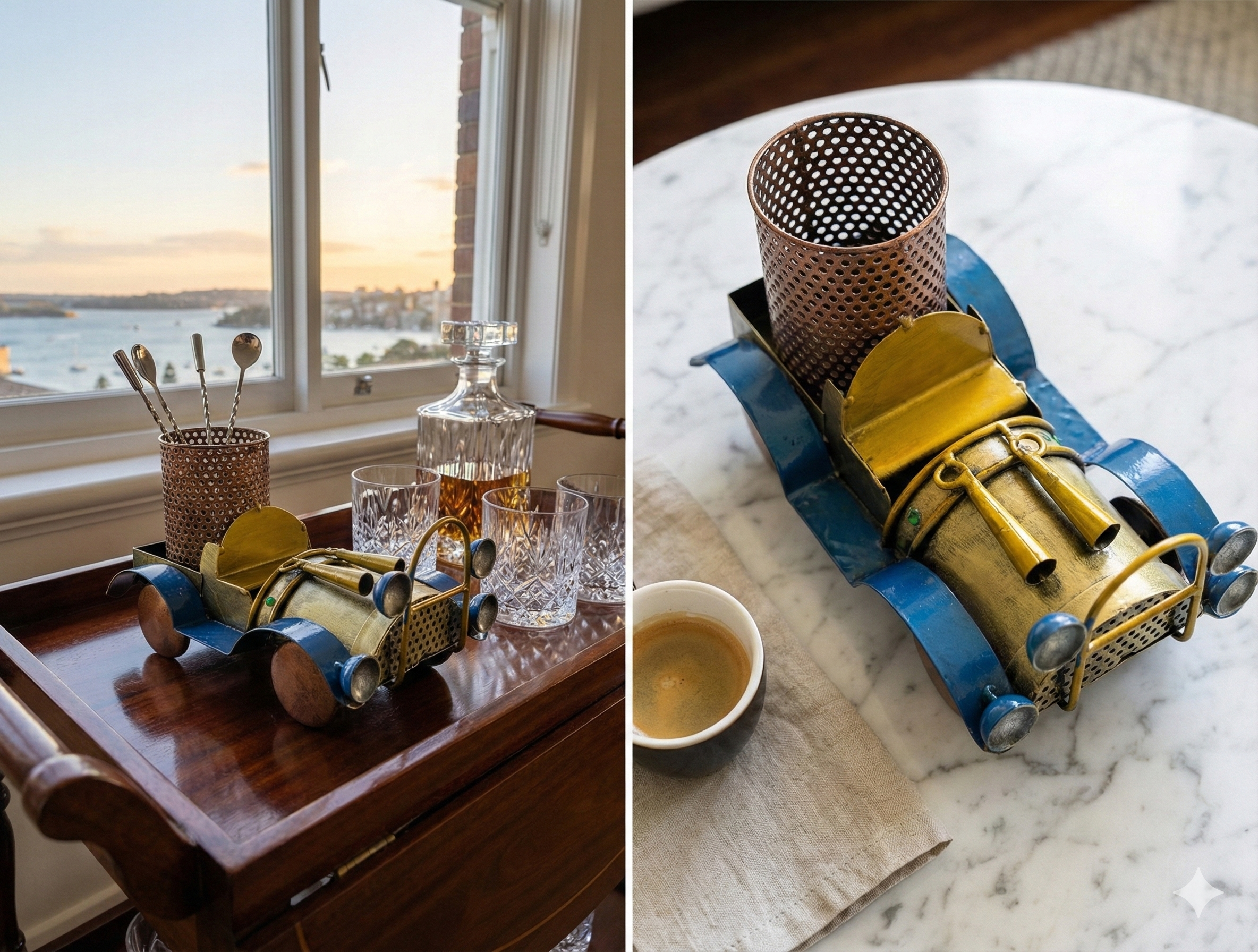 Vintage Metal Car Pen Stand / Tableware Holder. A pen stand /tableware holder that brings a warm, quietly luxurious touch... Read more
